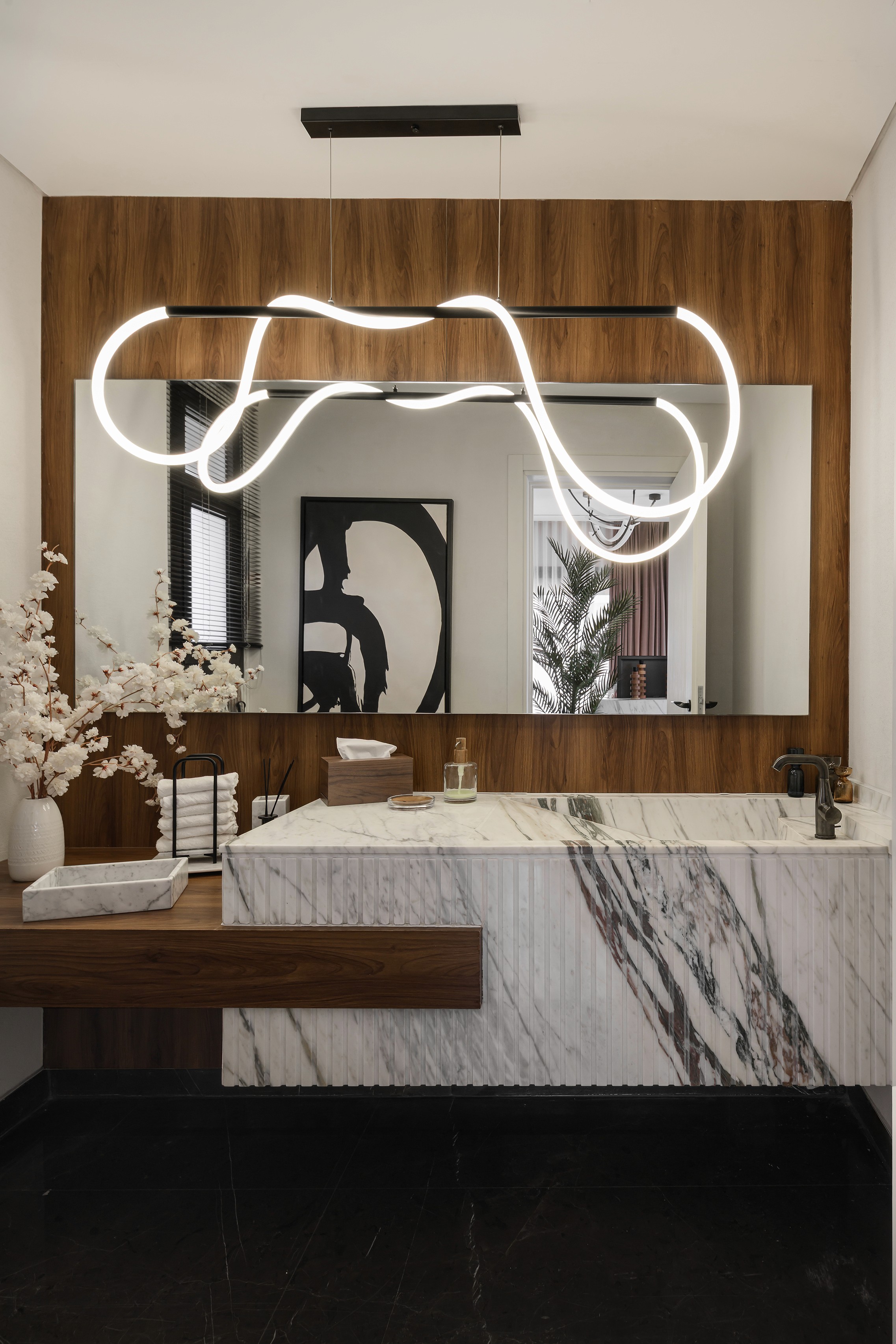 Using premium materials and understated color tones, the space balances sophistication with a lived-in sense of warmth. Every finish tells a story of craftsmanship, care, and connection, resulting in a home that feels as personal as it is polished.